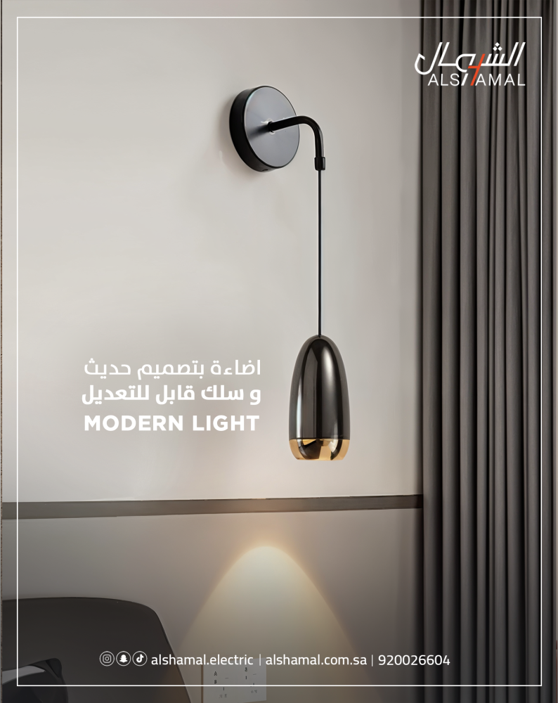 ارتقِ بديكور منزلك أو مكتبك مع هذه الإضاءة الجدارية العصرية ذات التصميم الأنيق والبسيط. بفضل هيكلها المعدني الأسود اللامع وسلكها القابل للتعديل، تمنحك حرية التحكم وتضيف لمسة فاخرة لأي غرفة. الإضاءة LED المدمجة توفر لك أجواء مريحة وعصرية، مثالية لغرف النوم، المكاتب، الصالات وزوايا القراءة.